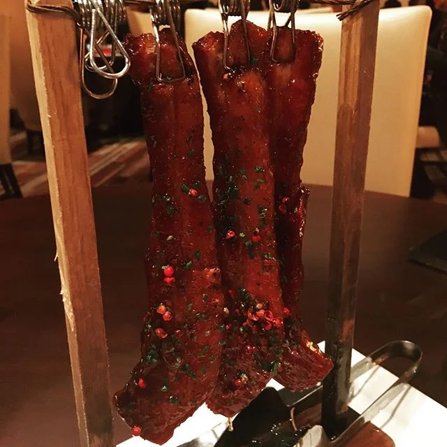 Clothesline Bacon with pink peppercorn and Vermont maple syrup
